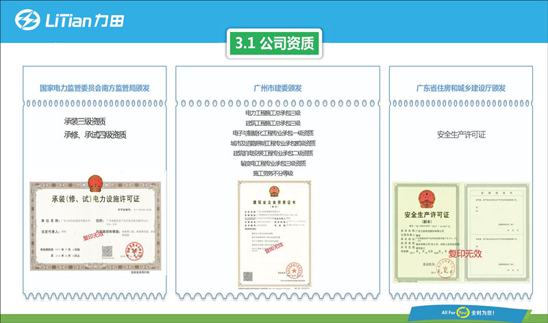 力田從未停止追求卓越的腳步,“以客戶為中心,以奮斗者為本”的精神力田人詮釋得淋漓盡致。力田公司擁有一批熱愛電力事業(yè)、富有激情、高凝聚力、高執(zhí)行力的人才隊(duì)伍,長期從事技術(shù)開發(fā)、工程項(xiàng)目管理工作,具備嫻熟、豐富的現(xiàn)場管理經(jīng)驗(yàn),公司激勵機(jī)制科學(xué)有效,員工隊(duì)伍十分穩(wěn)定,學(xué)習(xí)、創(chuàng)新能力強(qiáng),充分體現(xiàn)了力田公司團(tuán)隊(duì)優(yōu)勢、人才優(yōu)勢?!坝肋h(yuǎn)讓客戶享受保姆式的用電服務(wù)”是力田人的服務(wù)宗旨,力田成立十余年來,合作客戶已多達(dá)千家,大部分客戶更是常年合作,在業(yè)內(nèi)擁有廣泛的美譽(yù)度。公司以德建信,以信經(jīng)營,已連續(xù)多年獲得廣州市工商行政管理局授予的“守合同重信用企業(yè)”榮譽(yù)稱號。